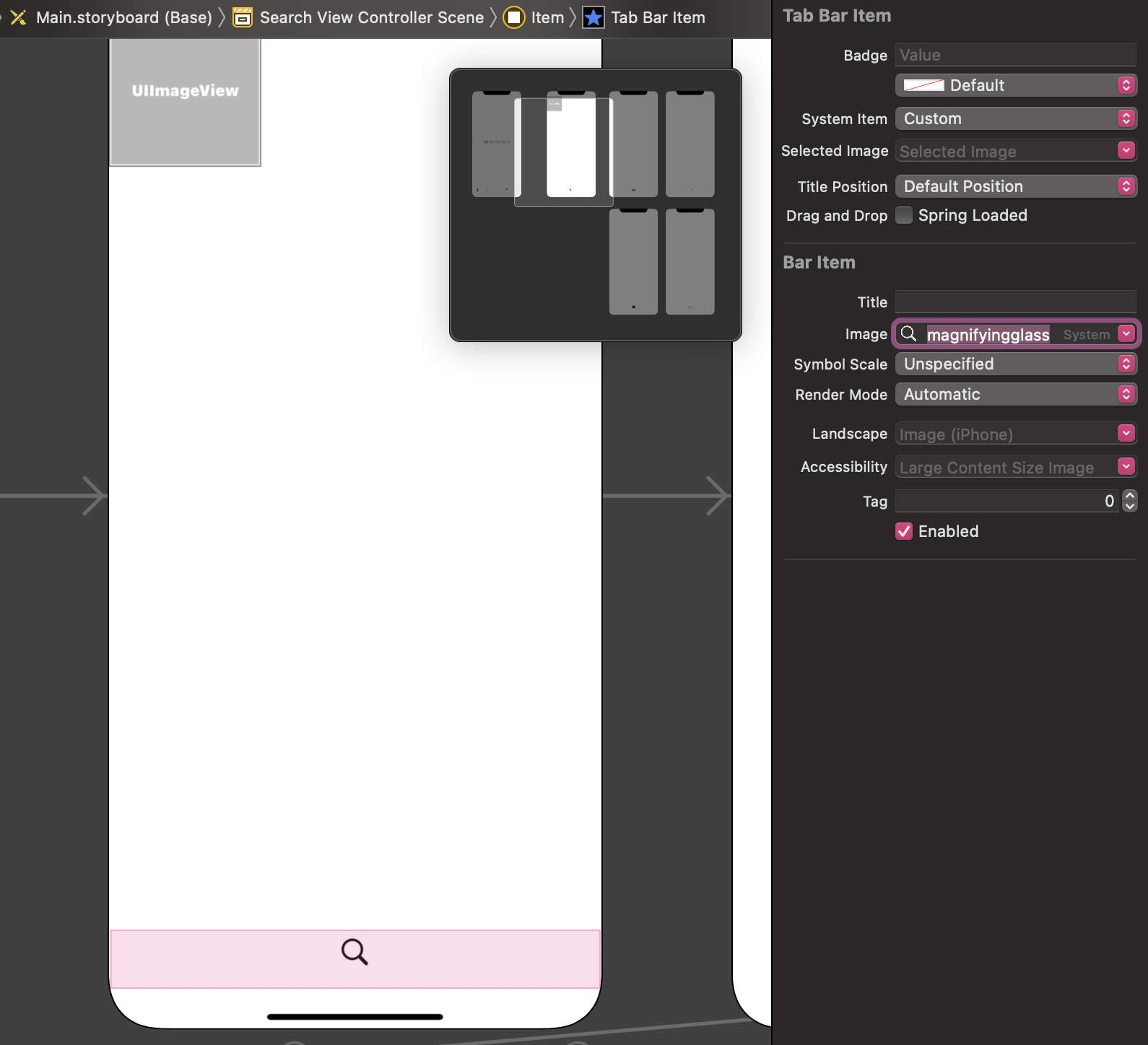 SearchViewController 클릭 > Editor > Embed In > Tab Bar Controller