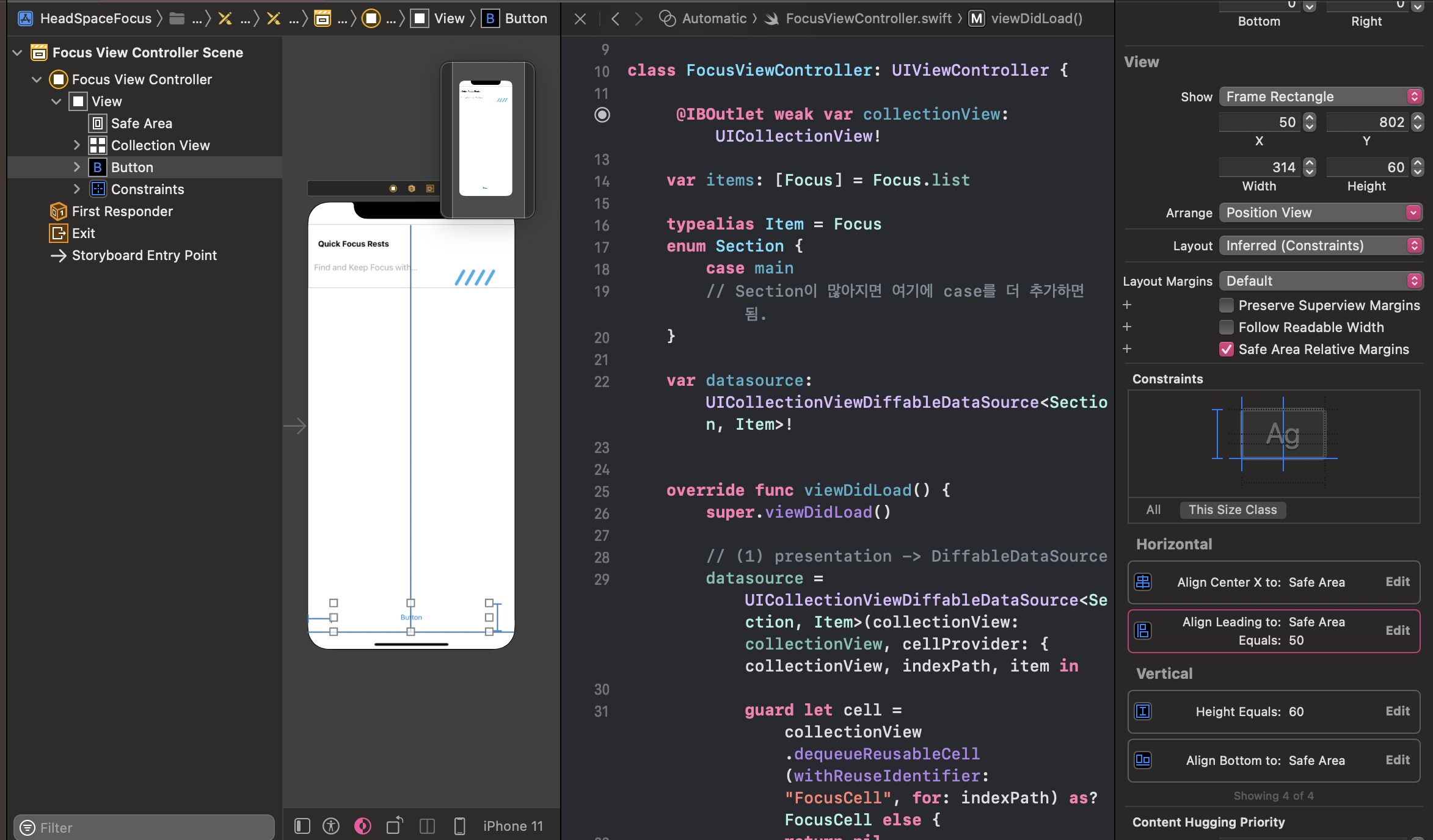 - "FocusViewController" 이름의 UIViewController을 만들어서, Main storyboard와 연결까지 완료