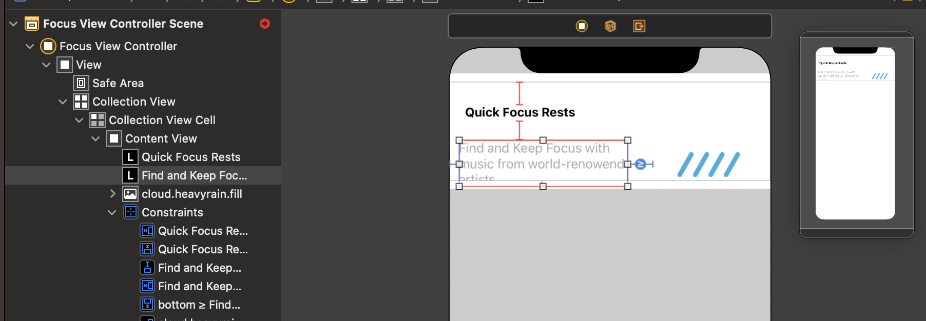 - "FocusCell" 이름의 UICollectionViewCell을 만들어서 CollectionViewCell 연결 및 Collection Reusable Identifier을 설정