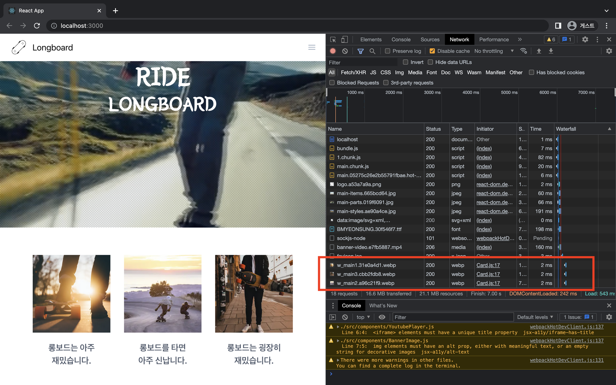 - squoosh를 이용하여 이미지를 webp 확장자로 변경한 뒤, import!