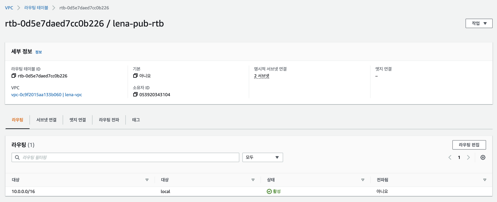 - 모든 트래픽이 IGW를 통해 외부와 연결됨을 확인