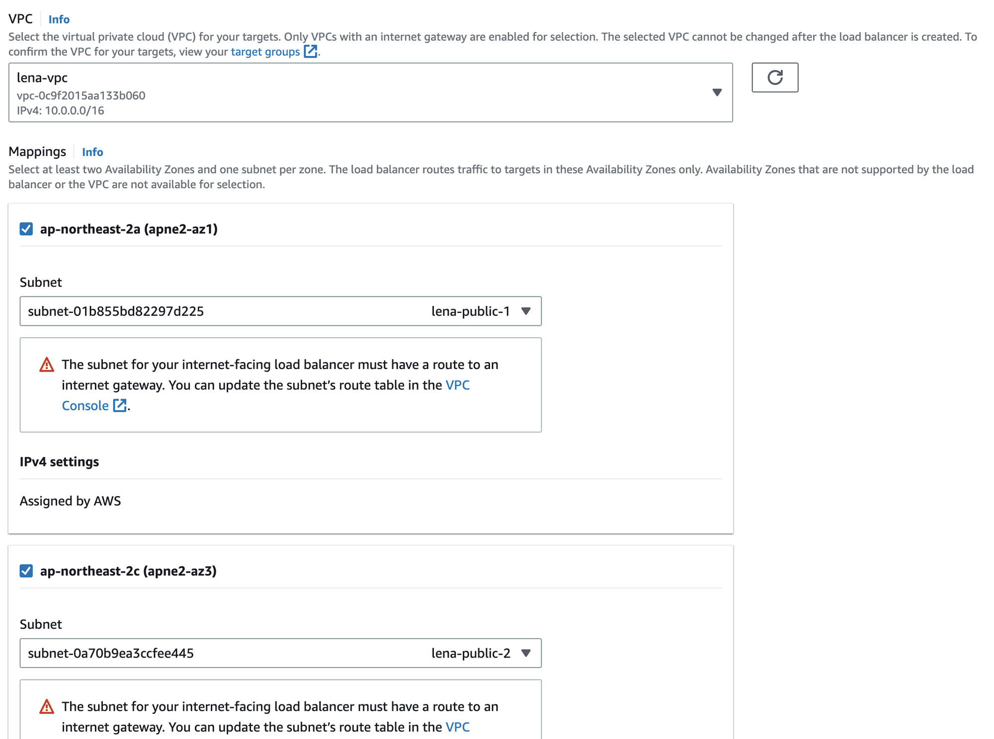 - 두개의 Public-subnet과 연결됨을 확인
