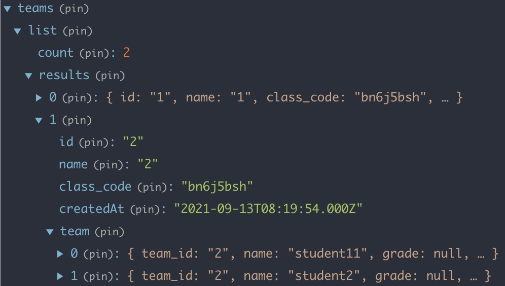 - students를 받아와서, 그안의 team배열을 map으로 돌려 화면에 출력한다!