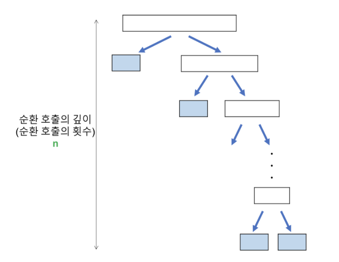- ๋น๊ตํ์ = ์ํ ํธ์ถ์ ๊น์ด * ๊ฐ ์ํ ํธ์ถ ๋จ๊ณ์ ๋น๊ต ์ฐ์ฐ = n^2