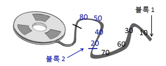 예를들어, 테이프 드라이브 같은 저장장치는 블록을 순차적으로만 읽고 쓰는 장치이므로, 2개의 블록을 동시에 주기억 장치로 읽어 들일 수 없다.