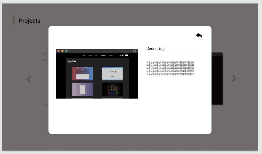 - Modal의 상태, 눌러진 항목의 id값, projects데이터들을 상태로 저장